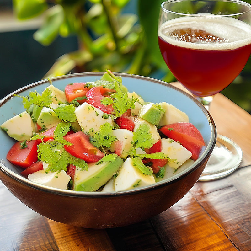 Una ensalada de palmito con aguacate es un plato refrescante costarricense que maridará beautifully con MORUS. El aguacate cremoso contrastará bien con la carbonatación de la cerveza, mientras que la ligera acidez del palmito complementará las notas de mora. Añada algunos segmentos cítricos a la ensalada para realzar los sabores frutales de la cerveza. La naturaleza ligera y refrescante de esta ensalada se equilibrará bien con el cuerpo medio de MORUS, haciendo de este un maridaje perfecto para un día cálido.
